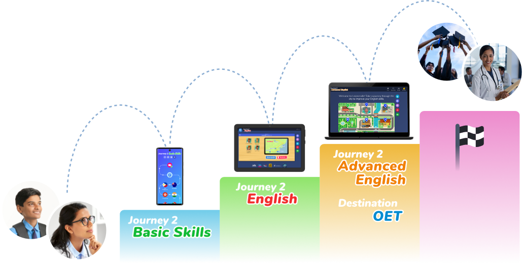 Klik2Learn offers a step-by-step learning journey designed to help learners progress from beginner to advanced English communication.